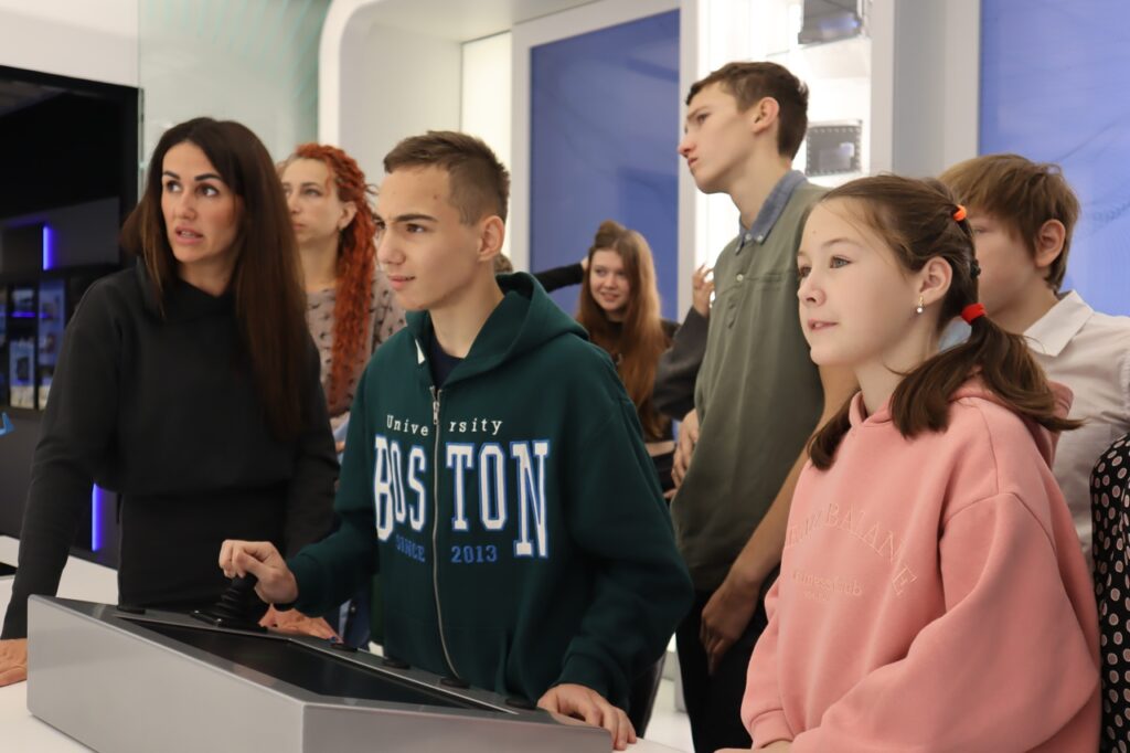 Первое знакомство началось в информационно-выставочном центре завода. Центр оборудован современной мультимедийной экспозицией, позволяющей подробно рассмотреть историю предприятия, его достижения и планы на будущее. Особое внимание ребят привлекла демонстрация устройства инерциальной навигационной системы на основе лазерного гироскопа. Используя игровой интерфейс, участники смогли испытать систему виртуальной навигации, ощутив сложность и очарование инженерных решений.