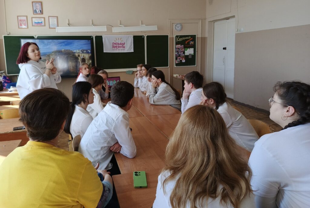 23 марта в рамках программы «Твоя траектория» для школьников СОШ №9 прошла встреча с Дарьей Кастериной — HR-менеджером, менеджером по обучению персонала ООО «Арт Рест» бренда Rostic’s.